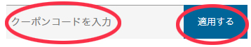 必ずこちらのクーポンコード欄にコードをご記入(コピーしたコードを貼り付け)の上「適用する」を押してください。